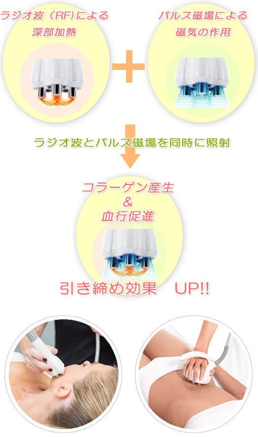 これらの相乗効果により、従来のRF機器よりも短時間で効率的に、深部までしっかりとアプローチが可能です。